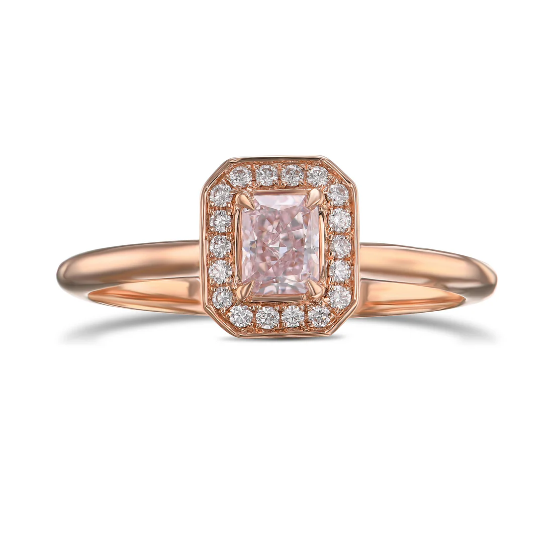 Fancy Pink Rose Emerald Halo Diamond Ring